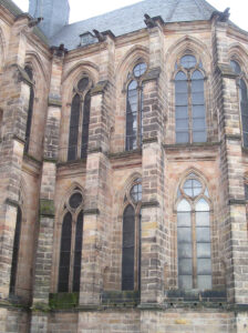 Marienstatt, ehem. Zisterzienserkirche 1225/27-1324: 3 schiffig, 7 Joche, dreizonig, longitudinal, Umgangschor, Einfluss aus Köln [10]