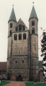 Bad Gandersheim, St. Anastasius und Innocentius, 926: Westturm, 995-1007: kreuzförmige Basilika mit Querschiff, 1081: Brand und Wederaufbau [1]