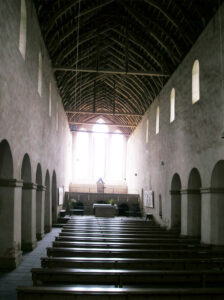 Reichenau-Oberzell, St. Georg: (um 900 gegr.: Basilika mit Dreikochenchor und Krypta); 2/2 10. Jh.: Basilika mit Vierungsturm und Doppelchor. Erhalten: Wandmalerei im Langhaus [8]