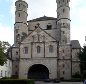 Köln, St. Maria im Kapitol: (8.-10. Jh.: Vorgängerkirche. Erhalten: 2 Fenster im Mittelturm); Abschlussweihe 1065: Basilika mit drei Konchen [1]