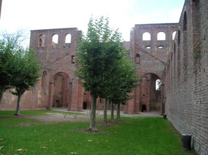 Limburg an der Haardt, 1025-45: Basilika, Ostquerhaus, Rechteckchor, 2 Türme, Krypta. Erhalten: Außenmauern [9]